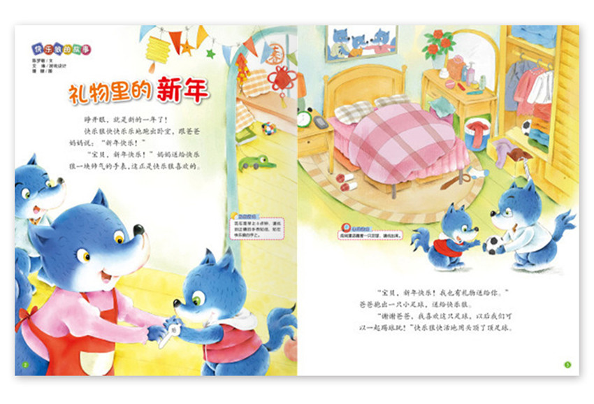 年底大掃除,一年就要結束了。胖豬穿上圍裙,戴上袖套,決定來一個年底大掃除。年底嘛,是除舊迎新的時候,丟掉舊東西,迎來新東西,才能使家變得更整潔、更美好。有個小洞的帽子,丟!有塊污漬的外套,丟掉了塊漆的小木偶,丟!胖豬忙得熱火朝天的時候,突然看到了馬叔叔在摁快樂狼的門鈴?!翱鞓防?收快遞了!"哎,快樂狼可真幸福呀!居然有遠方的朋友給他寄東西。