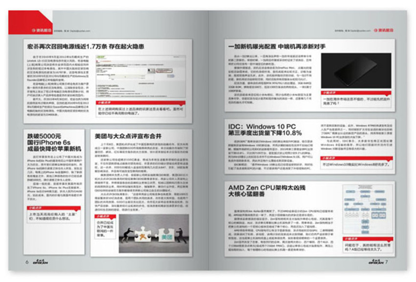 主要欄目:特別策劃,職場,新手帖,資源推薦,應(yīng)用技巧,游戲,讀編互動。主創(chuàng)編輯都具有5年以上編輯工作經(jīng)驗(yàn),嚴(yán)謹(jǐn)、專業(yè)的精神已經(jīng)融入他們的血液,內(nèi)容品質(zhì)是他們孜孜不倦的追求。關(guān)注市場的主流,關(guān)注技術(shù)的主流,關(guān)注的是讀者能買到的、具性價比的產(chǎn)品。