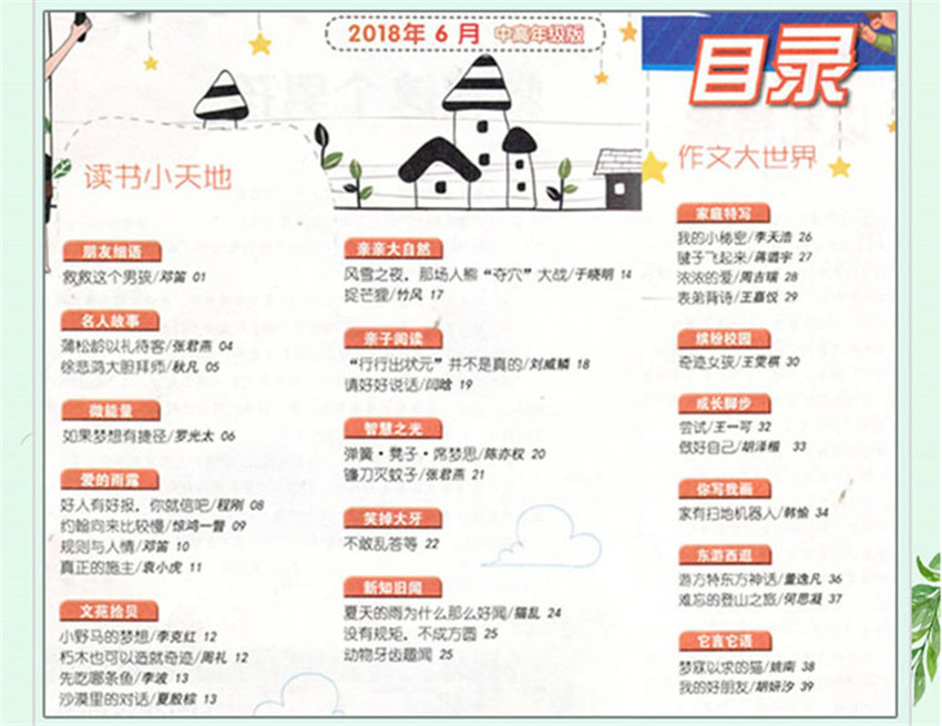 1993年創(chuàng)辦至今,主要欄目:天下名人、作文大世界、愛的雨露、親親大自然、機(jī)靈鬼大本營(yíng)、笑掉大牙、智力加油站、文苑拾貝、讀書筆記,是華人少年作文比賽組委會(huì)的會(huì)刊,刊登世界華人少年作文,參賽者來(lái)自四十多個(gè)國(guó)家的華校、國(guó)內(nèi)各省市及香港、澳門、臺(tái)灣地區(qū)中小學(xué)。