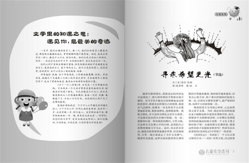 《兒童文學選刊》雜志創(chuàng)辦于1981年,注重理論聯(lián)系實際,創(chuàng)刊多年來得到了長足發(fā)展,雜志內(nèi)容充實、版式清新,裝幀精美,深受廣大讀者好評。多年來,少年兒童出版社共出版各類兒童文學讀物、人文科學讀物、自然科學讀物、低幼讀物、音像制品和電子讀物以及中、小學生使用的學習輔導用書和各類學生辭典、工具書15000余種,總發(fā)行量15億多冊。