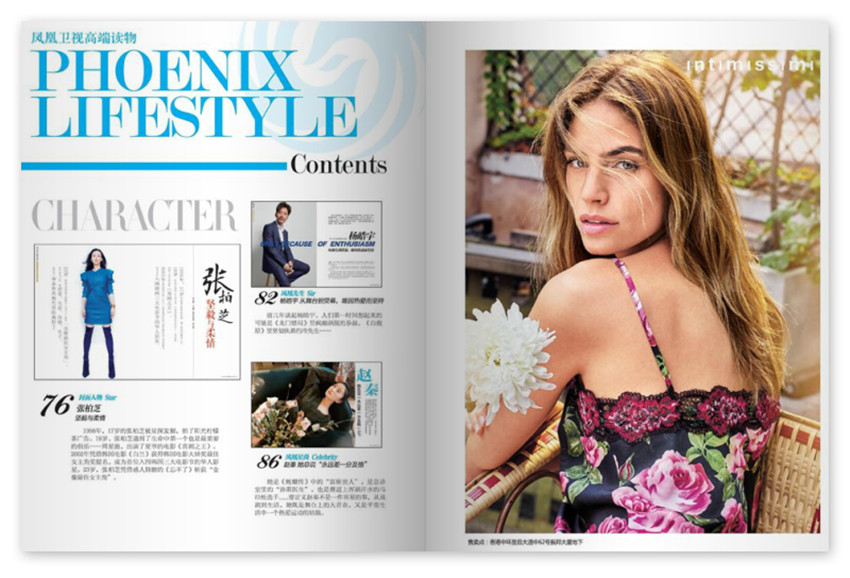 獲得中國國務院新聞辦公室和中國國家新聞出版署特許,通過中國圖書貿易進出口總公司,在中國大陸內地發(fā)售的頂級時尚生活月刊。鳳凰衛(wèi)視董事局主席劉長樂先生親自擔任鳳凰周刊有限公司董事長和出品人。