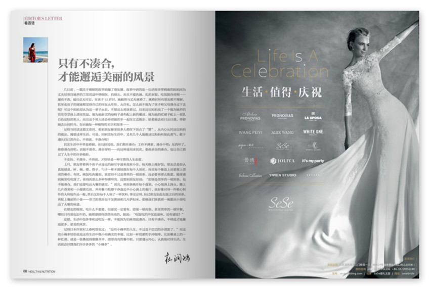 把握潮流理念,分享健康生活方式,提供多方位營養(yǎng)資訊,關(guān)愛精英生活,推動健康升級,著力打造健康、自由的生活理念,以最快的速度,以最專業(yè)的手法,較大化地為客戶和讀者創(chuàng)造價值,主要欄目:我們推薦,科學(xué)聲音,健康榜樣,大廚上菜,以提升健康素養(yǎng)為己任,并與衛(wèi)生系統(tǒng)機構(gòu)中國疾病預(yù)防控制中心聯(lián)合開設(shè)專題欄目,面向城市精英普及營養(yǎng)科學(xué)的雜志。