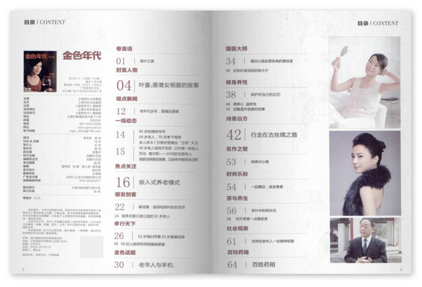 《金色年代》雜志是由上海文藝出版集團(tuán)全力推出的“中國老資格公民”生活類時尚雜志,是第一本以全新的理念、密集的信息,講述50歲以上讀者新的生活理念、新的生活方式的中老年精品雜志。是一群有著較高文化素養(yǎng)和消費能力,極具引領(lǐng)中老年時尚、倡導(dǎo)活力生活能力的高素質(zhì)公民。