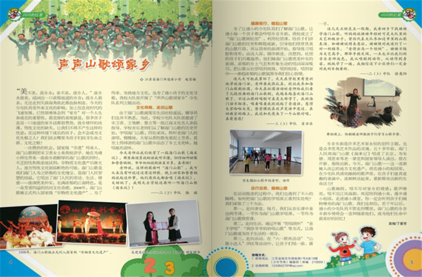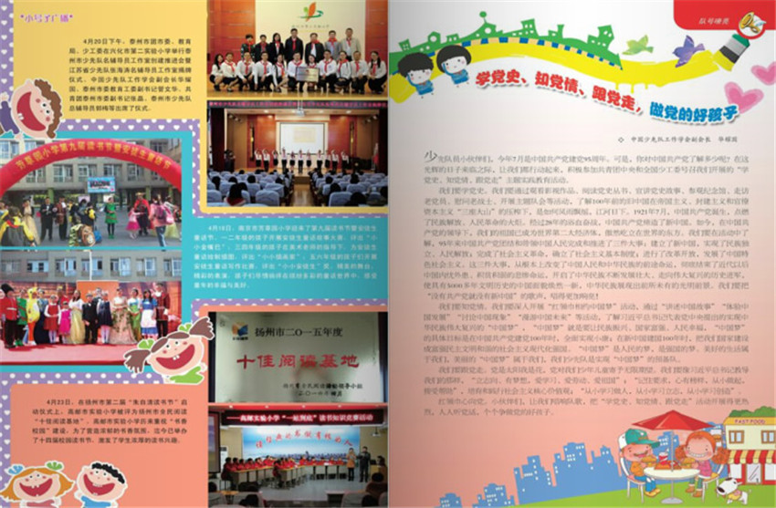 雜志讀者對(duì)象為全省小學(xué)一年級(jí)到初中二年級(jí)學(xué)生,內(nèi)容立足江蘇,面向全國,及時(shí)報(bào)道有創(chuàng)意的江蘇少先隊(duì)活動(dòng)。