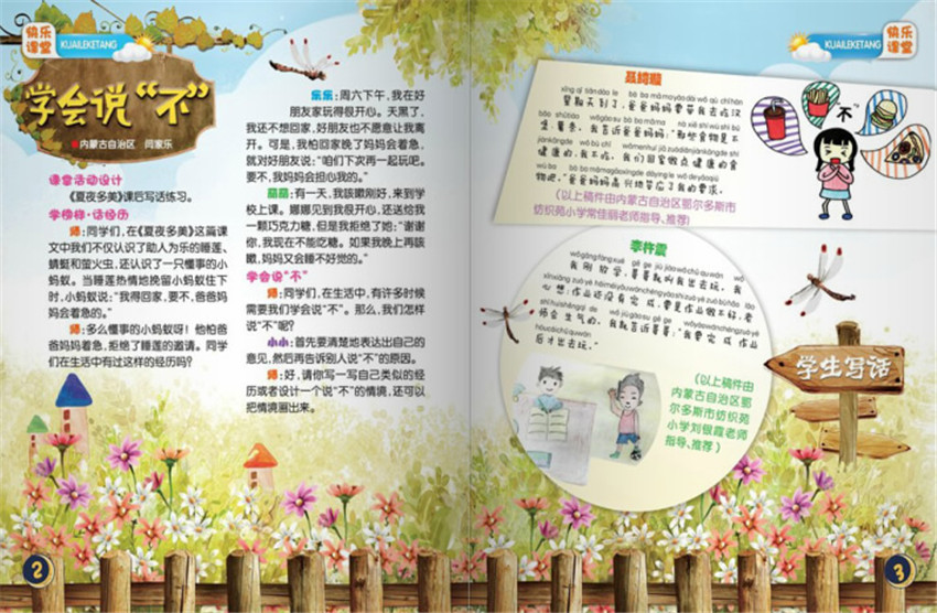 《快樂(lè)作文》“快樂(lè)課堂”欄目緊密配合“人教版”“冀教版”“蘇教版”等各版本教材中的作文訓(xùn)練內(nèi)容,與作文教學(xué)同步,內(nèi)容體現(xiàn)教學(xué)過(guò)程和教法、學(xué)法,使學(xué)生高高興興、輕輕松松學(xué)作文。