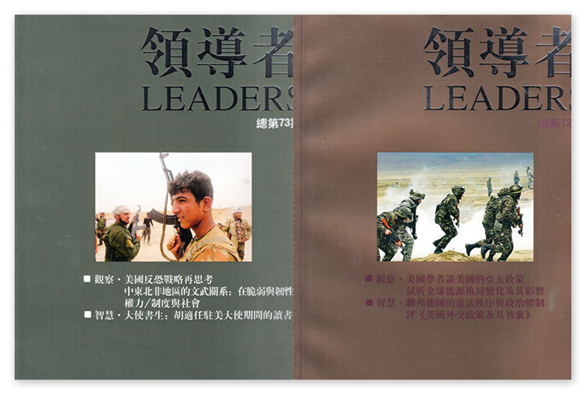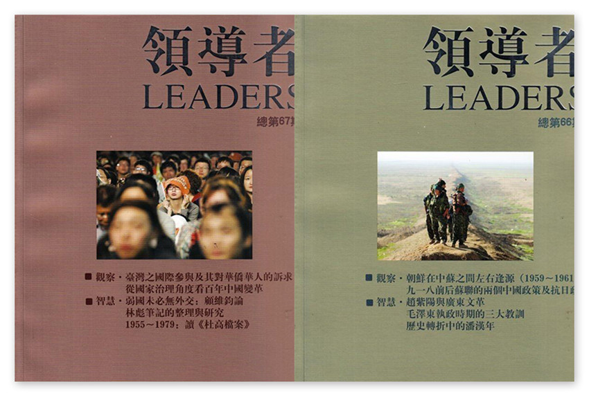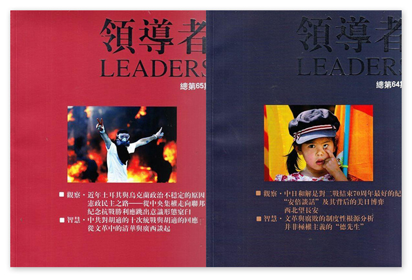 《領(lǐng)導(dǎo)者》雜志是中國一本針對(duì)領(lǐng)袖人群的高端大型雜志,主要內(nèi)容涉及政治、經(jīng)濟(jì)、軍事、外交的戰(zhàn)略性全局性的觀點(diǎn)和思考;重大歷史事件的回顧;世界著名領(lǐng)袖的傳記;科技新資訊;高端人群關(guān)注的醫(yī)療、健康、出行、收藏、置業(yè)等。