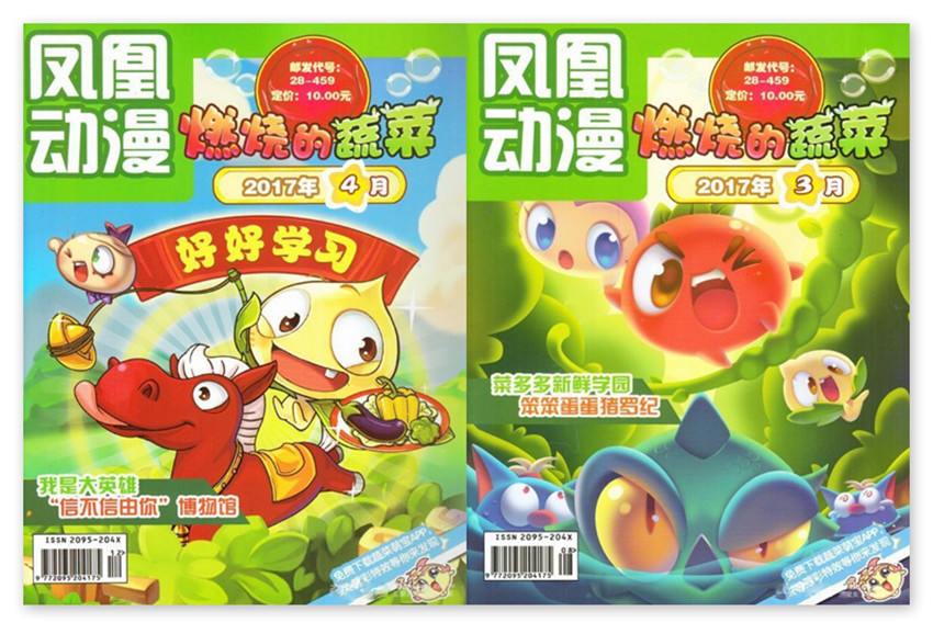 《燃燒的蔬菜》雜志期刊主題健康綠色活潑輕松幽默,內容涵蓋“燃燒的蔬菜”動畫片截屏漫畫連載,國內頂級優(yōu)秀漫畫連載,搞笑幽默小故事,校園爆笑四格等,每個欄目精心設計,適合小學階段孩子閱讀,以圖為主,文圖結合,設計精妙,精彩紛呈。