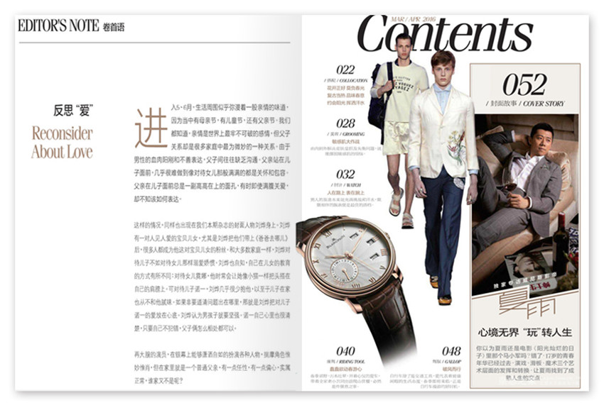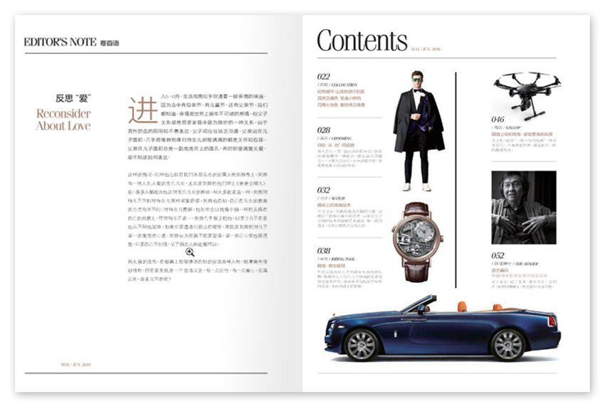 在這個(gè)物欲橫流的時(shí)代,《紳士生活》不是單純提倡“富而貴”的紳士生活形態(tài)的理念價(jià)值觀,而是更應(yīng)引領(lǐng)紳士接近東方上流社會(huì)的生活文化,與國(guó)際上流社會(huì)生活以及文化接軌,展現(xiàn)和詮釋著“穩(wěn)重大氣、有智慧、懂得生活樂趣”的新東方紳士形象,秉持東西文化交融的審美趣味。